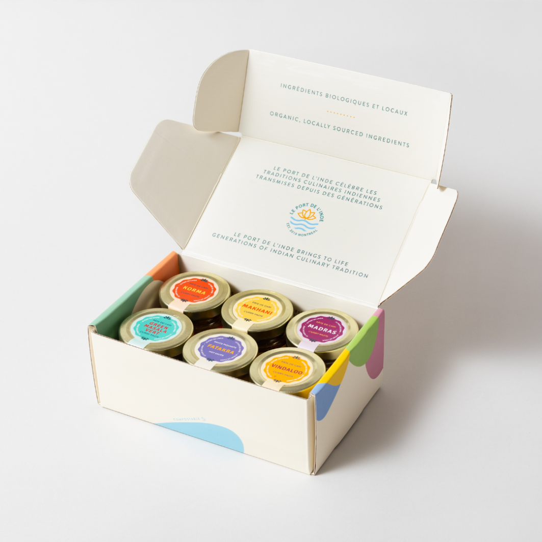 Le Port de l'Inde is a Montreal company founded by a mother-son duo, specializing in the manufacture of artisanal curry pastes inspired by Indian cuisine. Developed by chef Corrine Deane after more than 25 years of experience, the recipes are made from local and organic ingredients when possible, to make Indian cuisine accessible, tasty and rooted in the local terroir, while respecting the richness of traditions.