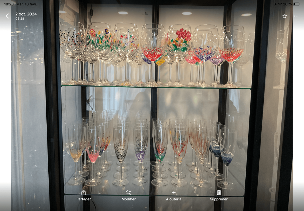 Retiree whose hobby is painting on wine glasses or Champagne flutes. The glasses are dishwasher safe because the paint is baked in the oven. Offered as a gift for parties, Christmas, hostess gifts, etc. Each kit includes 4 glasses with the same design but in different colors so that each guest can recognize their glass. I did 3 exhibitions last year and it was very much appreciated.